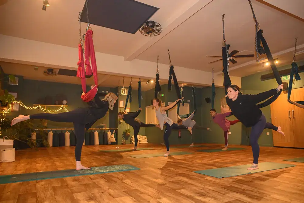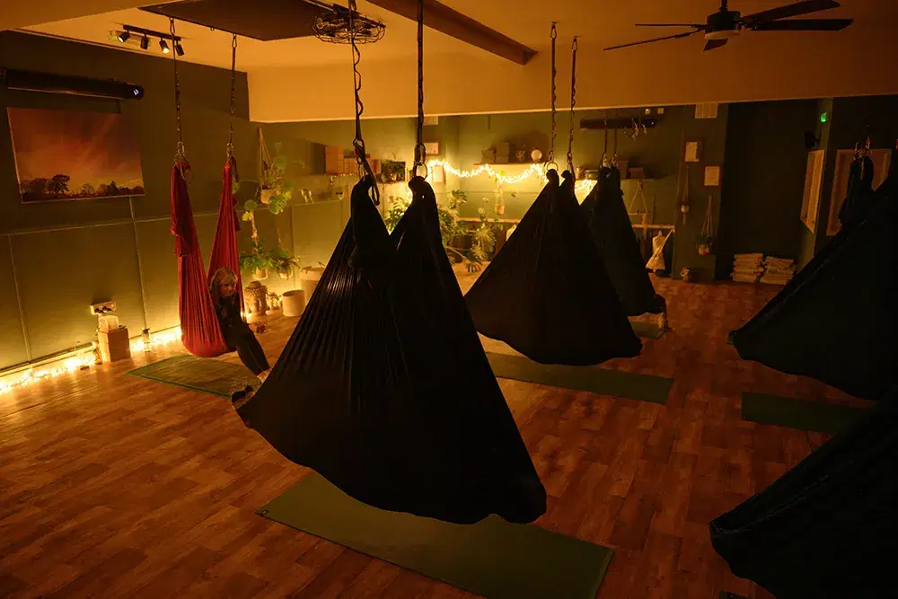 Suspending your body or specific body parts is thought to create gentle traction, allowing for a more intuitive and soothing opening of your body compared to traditional mat practice. The silks are incredibly beneficial for improving balance and can help you access postures that you might find challenging on the mat alone.