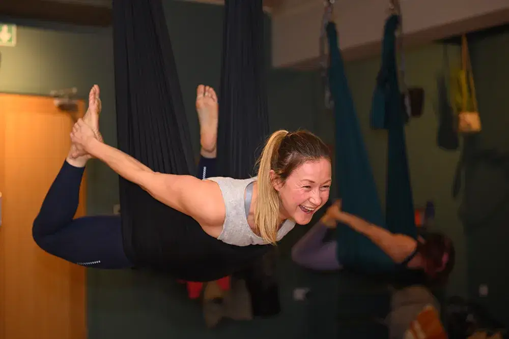 I love the versatility of the hammocks. We use them for relaxing, to help support us to get into better yoga positions and to try out fun moves. Nicola always makes the classes fun, interesting and challenging at times. The environment is just a wonderful escape from daily life and the class is something to look forward to every week. I cannot recommend aerial yoga highly enough!